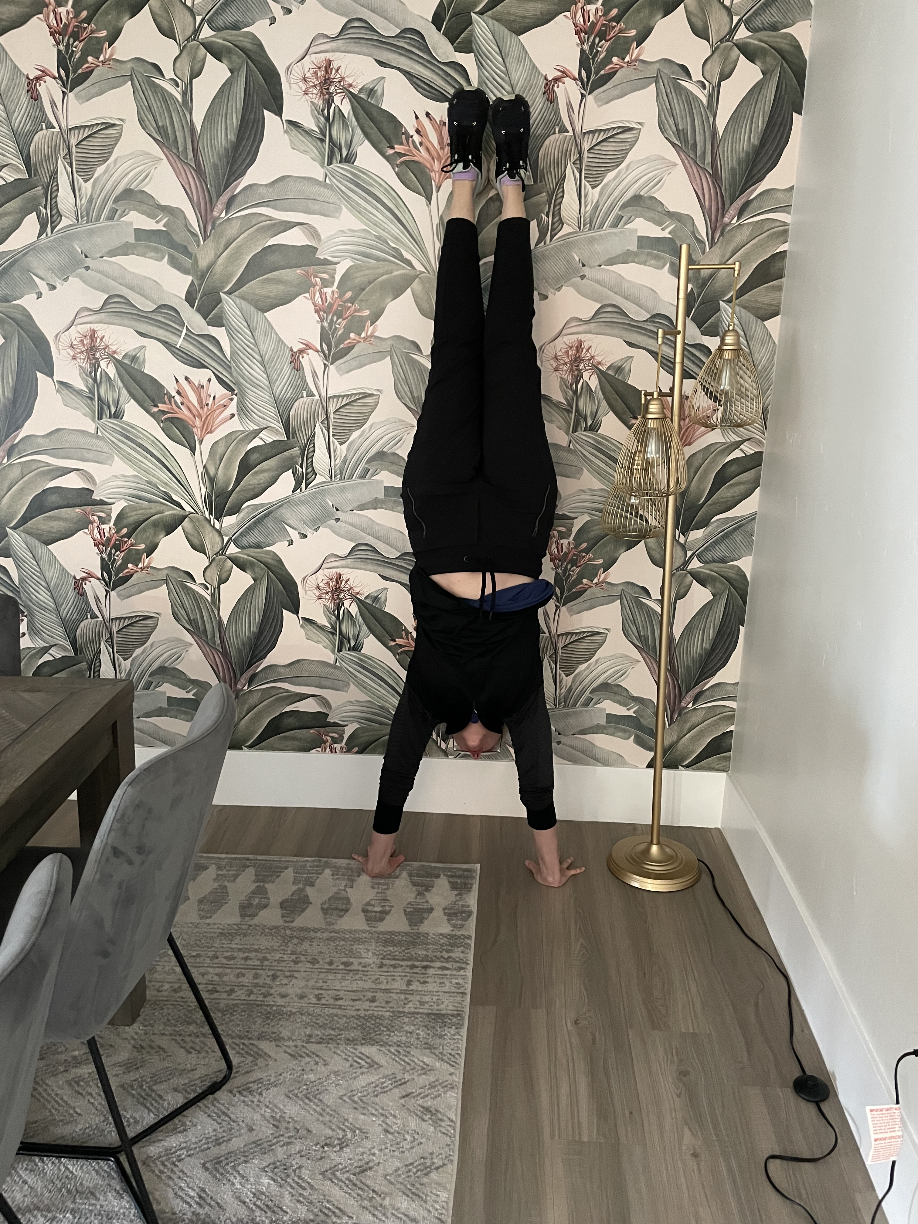 On January 1, 2022, I decided to do one handstand a day and document it, which is the official way to say I took a selfie. I had three rules: set up a self-timer, get upside down, and no retakes if I didn’t like the photo. I wasn’t sure where I was going with this mini project, but it felt good to recall the muscle memory of thousands of handstands from my younger days. I looked forward to my daily inversion and I was on my way to a handstand-a-day for the year of 2022. As a repeat non-follow-through-er (yes, I realize the irony), it felt good to be in the follow through camp.