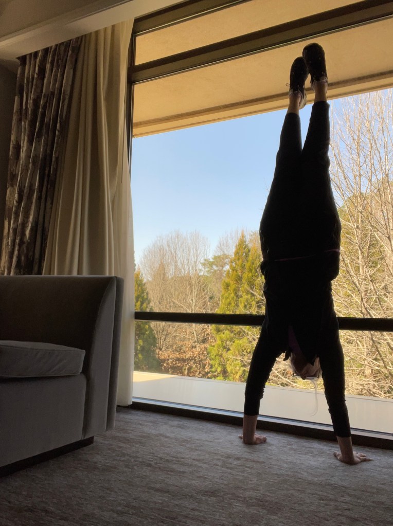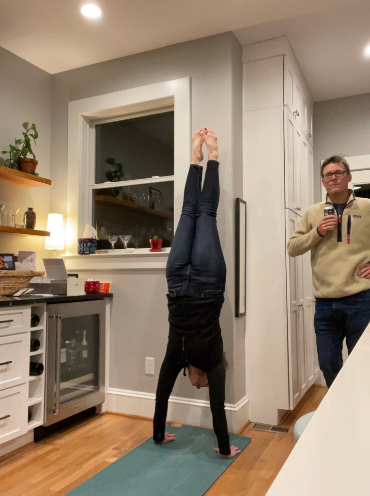As the weeks, then months passed, I felt strong. I started envisioning the finish line, the thrill of victory. I’d write a blog post titled, “365 Handstands: Zen Warrior,” or maybe, “365 Handstands: Frumpy to Pumpy in One Year,” …something would come to me. I’d get such positive feedback from friends that I’d share my post on Instagram. Initially a slow burn, it would catch the attention of Amy Poehler, who also struggles with a weight fluctuation of 10-to-15-pounds, and she would ‘like’ the post. Retired gold medalist soccer player Abby Wombach would recognize herself in the display of grace from a fellow aging athlete, would also ‘like’ it. From there my handstand story would bounce between athletes and comedians until it was a full-on viral event. I would be contacted by Jemele Hill, Brene Brown, and Robin Roberts for interviews. Jemele and I would talk about breaking away from corporate America. Robin, after listening to my podcast chat with Jemele, would request a feel-good puff piece with no cursing. Brene and I would discuss “living in the arena” and having the courage to follow through with our dreams. They will all want to know what inspired me, if I was still doing handstands every day, and what advice I have for my millions of “handfans,” the nickname coined by my husband and me because we think we’re hilarious. The handstand phenomenon sweeping the nation would eventually lead me to my life’s work with Michelle Obama where we join forces and pledge to teach every child in America how to accomplish their goals through daily handstands.